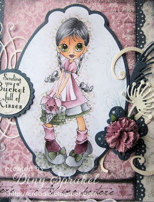 I knew that I was going to do a little tag, so off to gather some embellies...I found some great papers, some beautiful lace, a little doily, a charm and then I just had to find me some perfect coloured flowers. Hmmm...flowers... where is those perfect flowers? My gosh! I can't find any flowers that match the colours I have on my image. Hmmm...what's a girl to do?