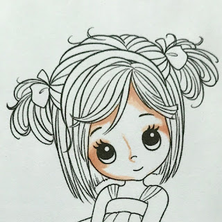 After using my Colourless Blender to clean some out of place colouring, I coloured the pigtail ribbons and the headband.