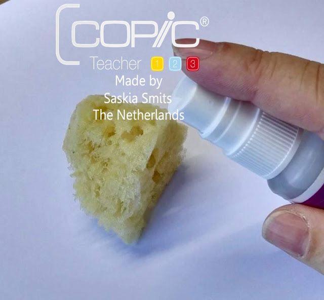 TIP: Don't leave the sponge too long on the image, because then your Copic colours will fade too much.