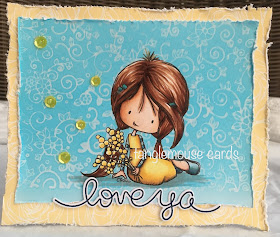 Your design will now look something like this and you can carry on colouring sweet Wryn with Copic Markers. Don't worry if some background ink has seeped under the mask - you can ease it out with a colourless blender pen.